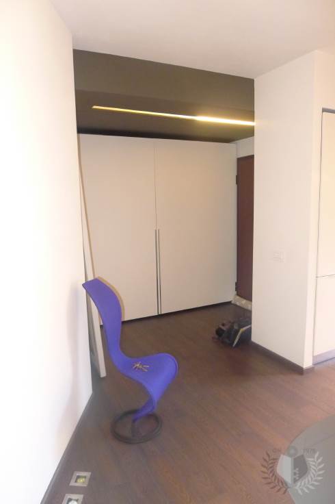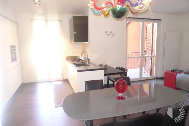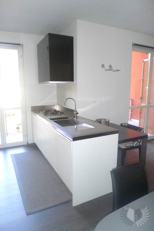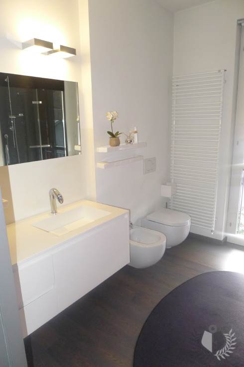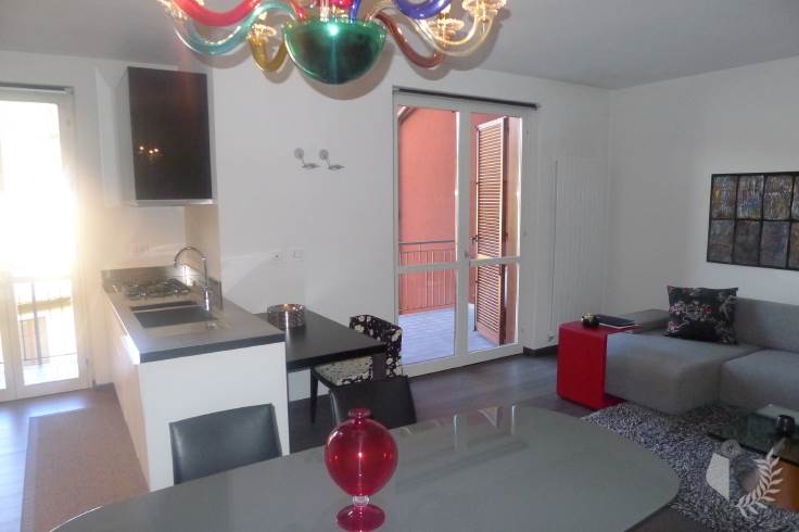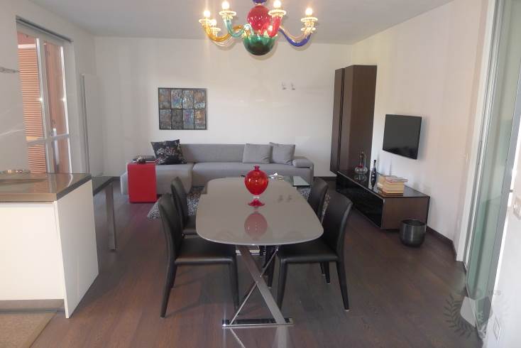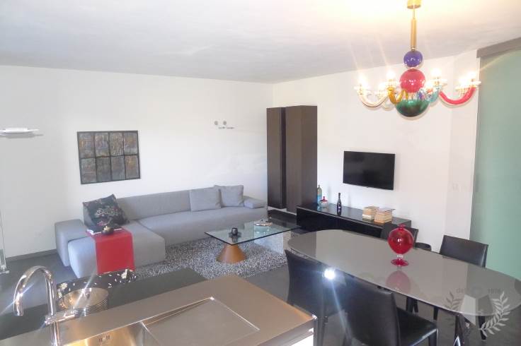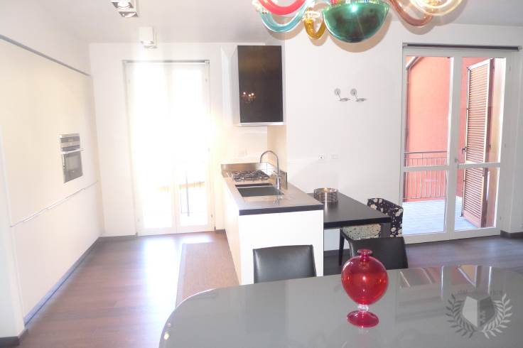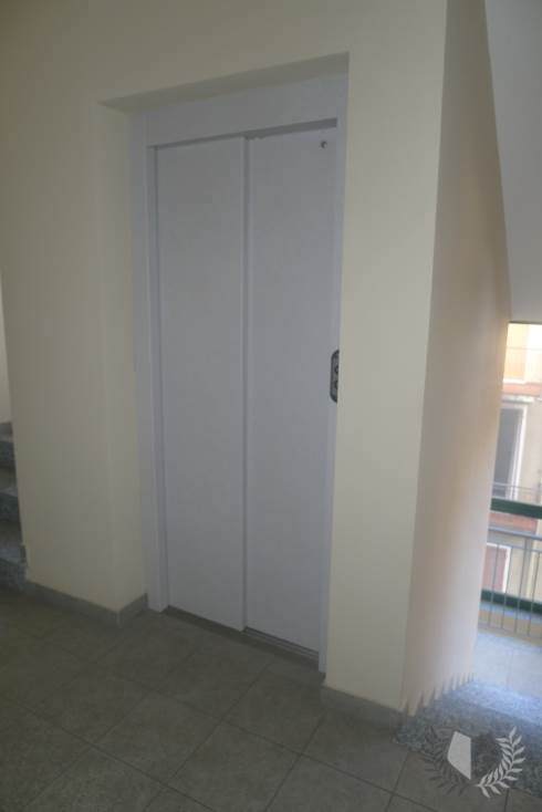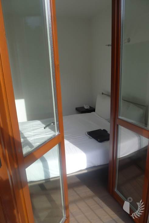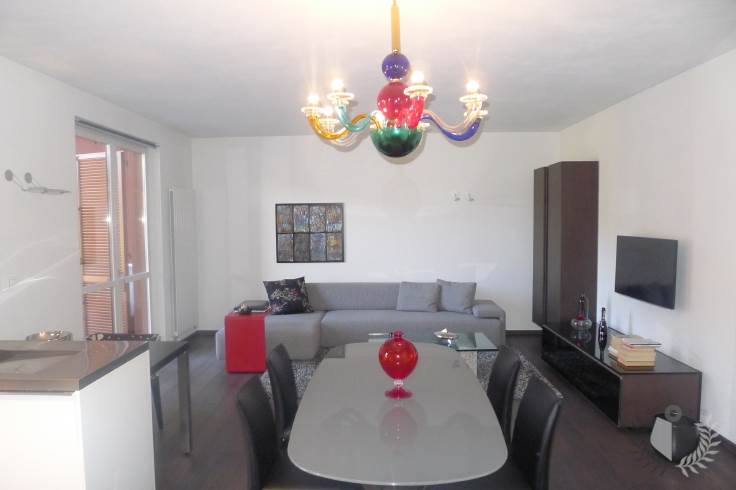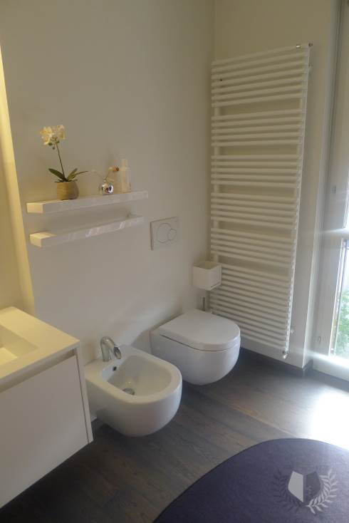 Les sols sont en parquet et carrelage, les fenêtres en bois et les portes intérieures en verre dépoli (Rimadesio).