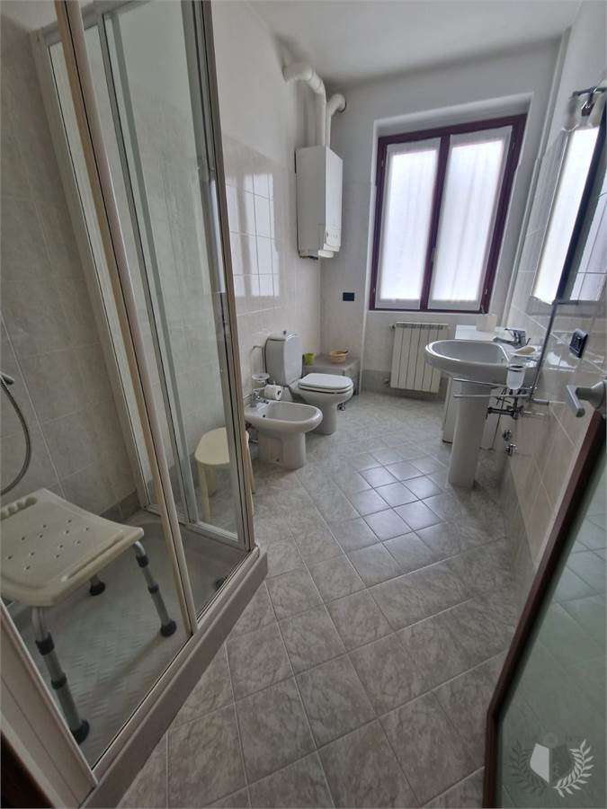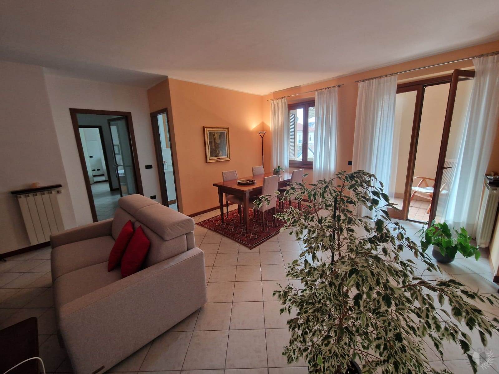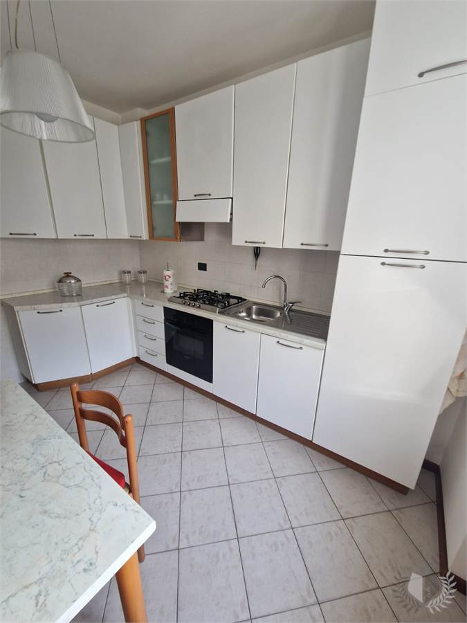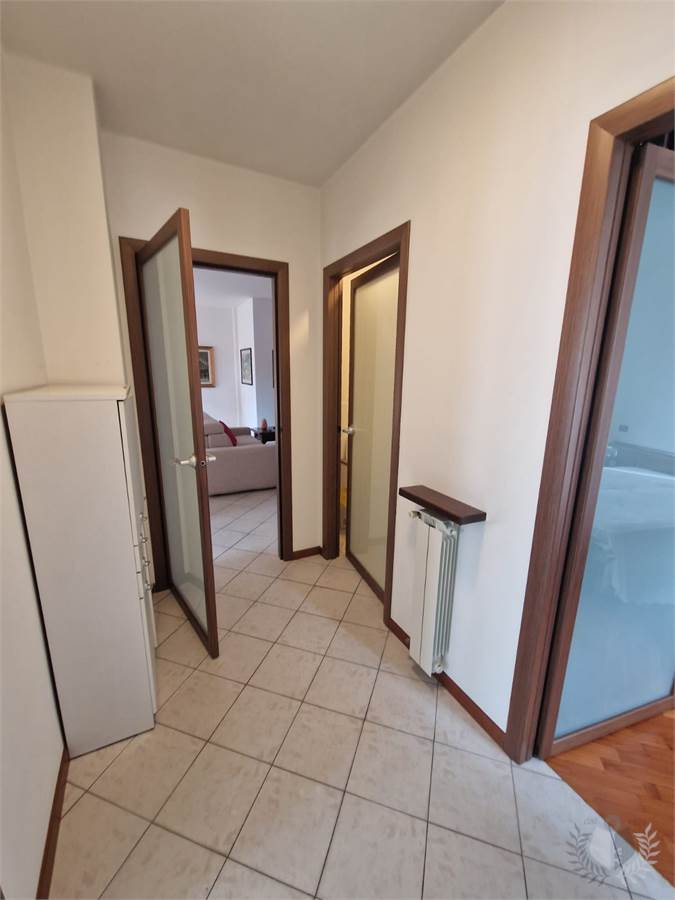 Ingresso su ampio soggiorno living affacciato al primo terrazzo, cucina abitabile, disimpegno, ripostiglio lavanderia, bagno con doccia, due ampie camere da letto e altro balcone.